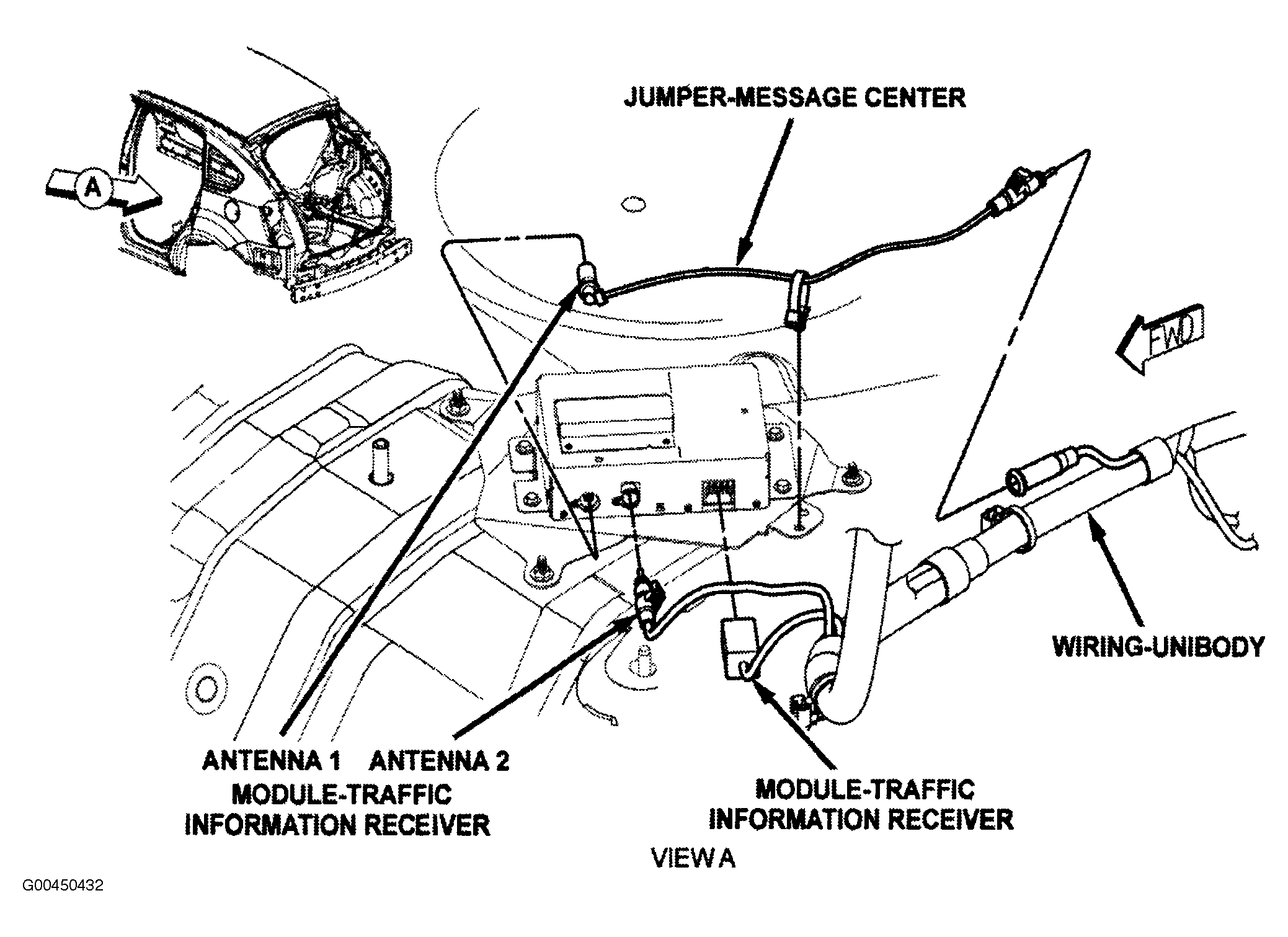 | Traffic Information Receiver Module | Left rear body floor. See Figure. |