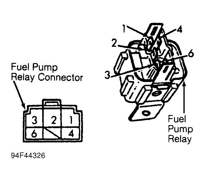Locate fuel pump relay. Relay is located below center of instrument panel, in front of center console. Measure voltage at fuel pump relay connector as indicated. Disconnect fuel pump relay and check resistance at relay terminals as indicated. If voltage or resistance is not as specified, replace relay. See FUEL PUMP VOLTAGE TEST table and FUEL PUMP RESISTANCE TEST . See Fig 1 .