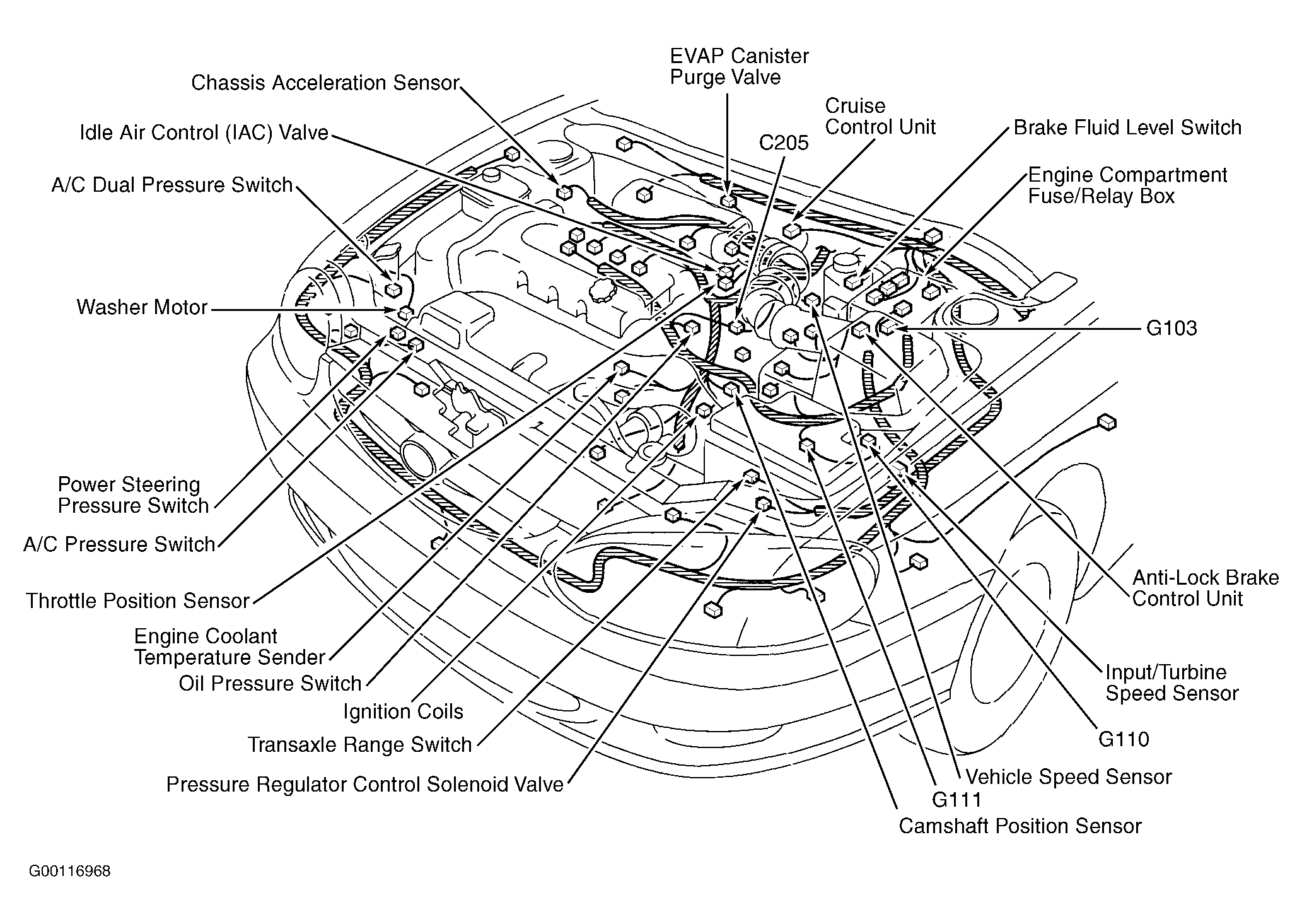 | Cruise Control Unit | Right rear of engine compartment. See Figure . |