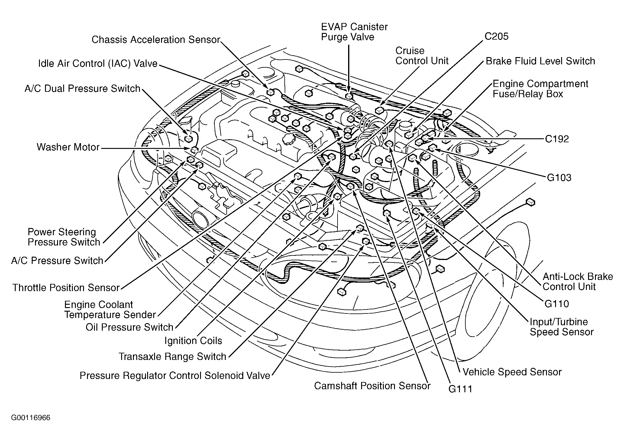| Cruise Control Unit | Right rear of engine compartment. See Figure . |