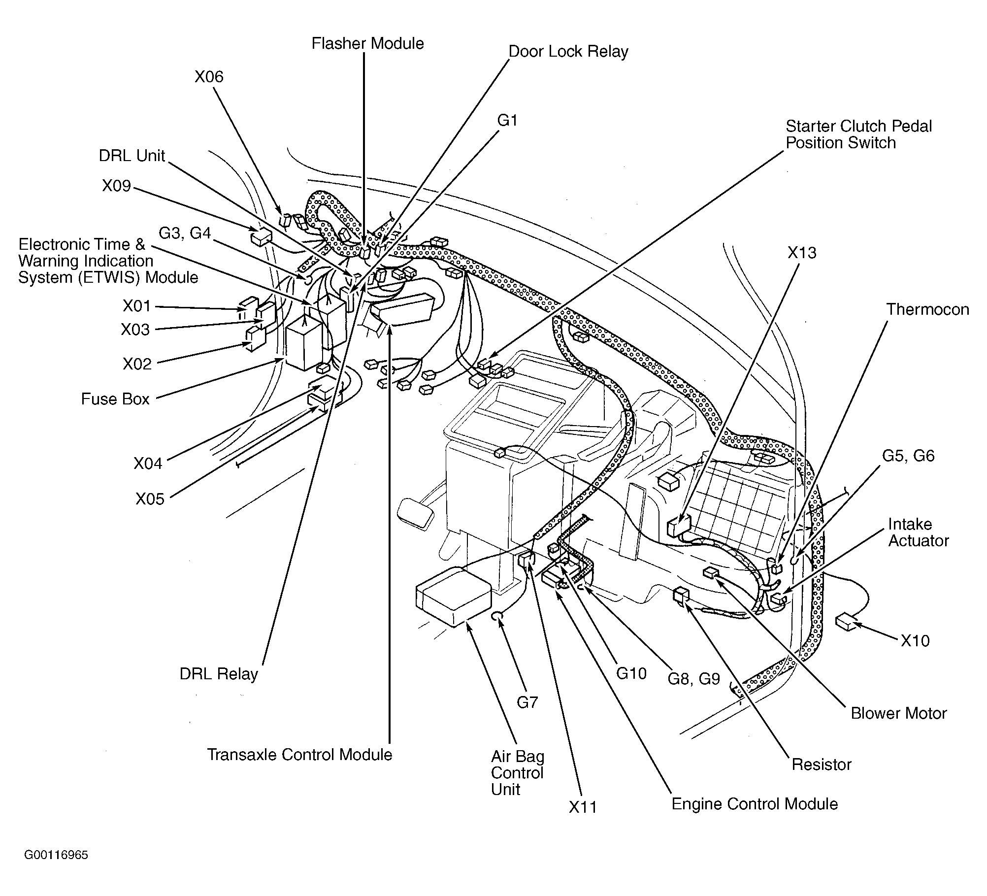 | DRL Unit | Behind left side of dash. See Figure . |