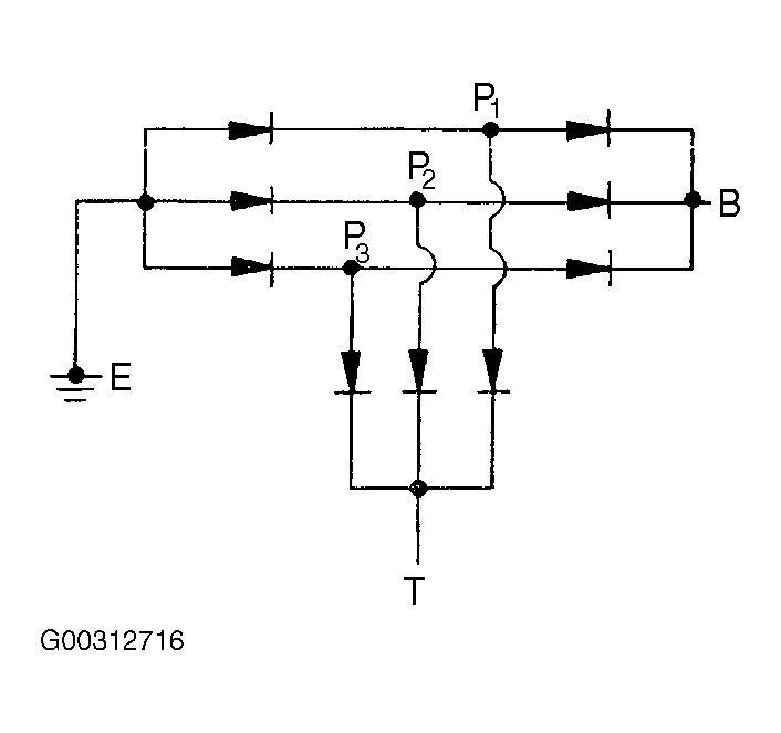 Check for continuity between each diode with an ohmmeter. See