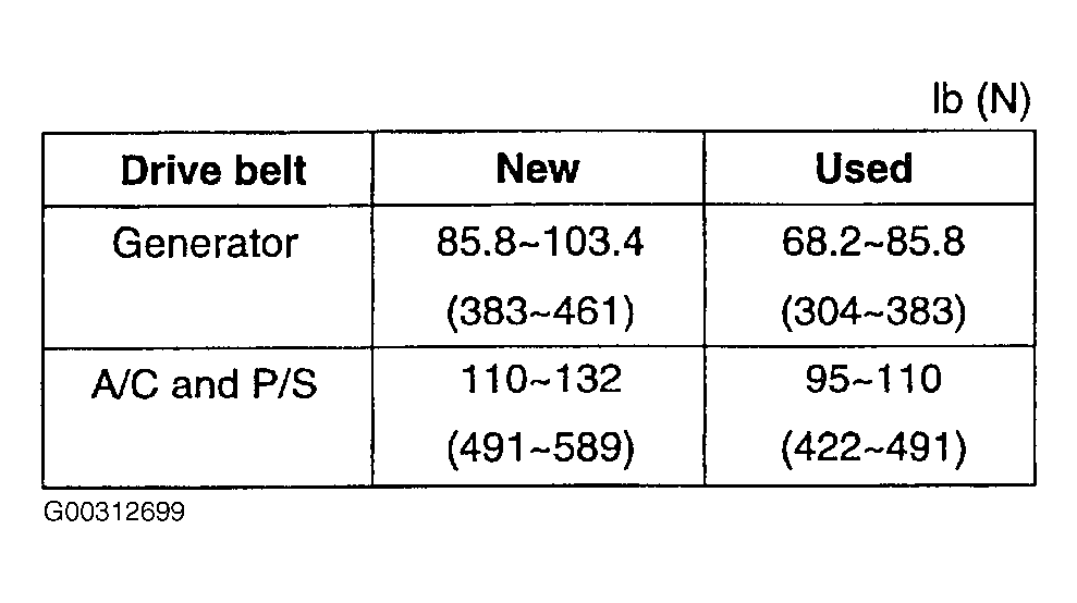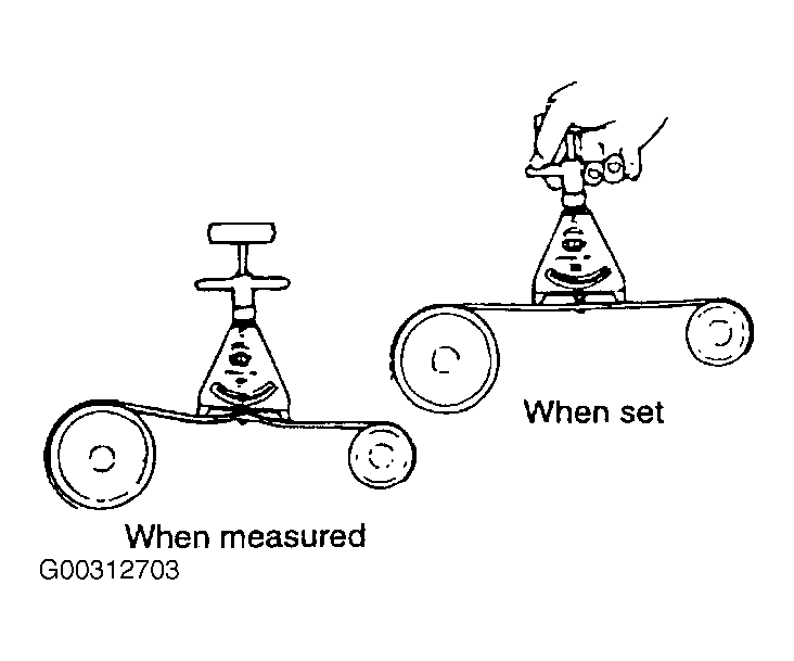 Measure deflection by applying moderate pressure (22 lb [98 N]) midway between pulleys. Adjust if necessary. See
