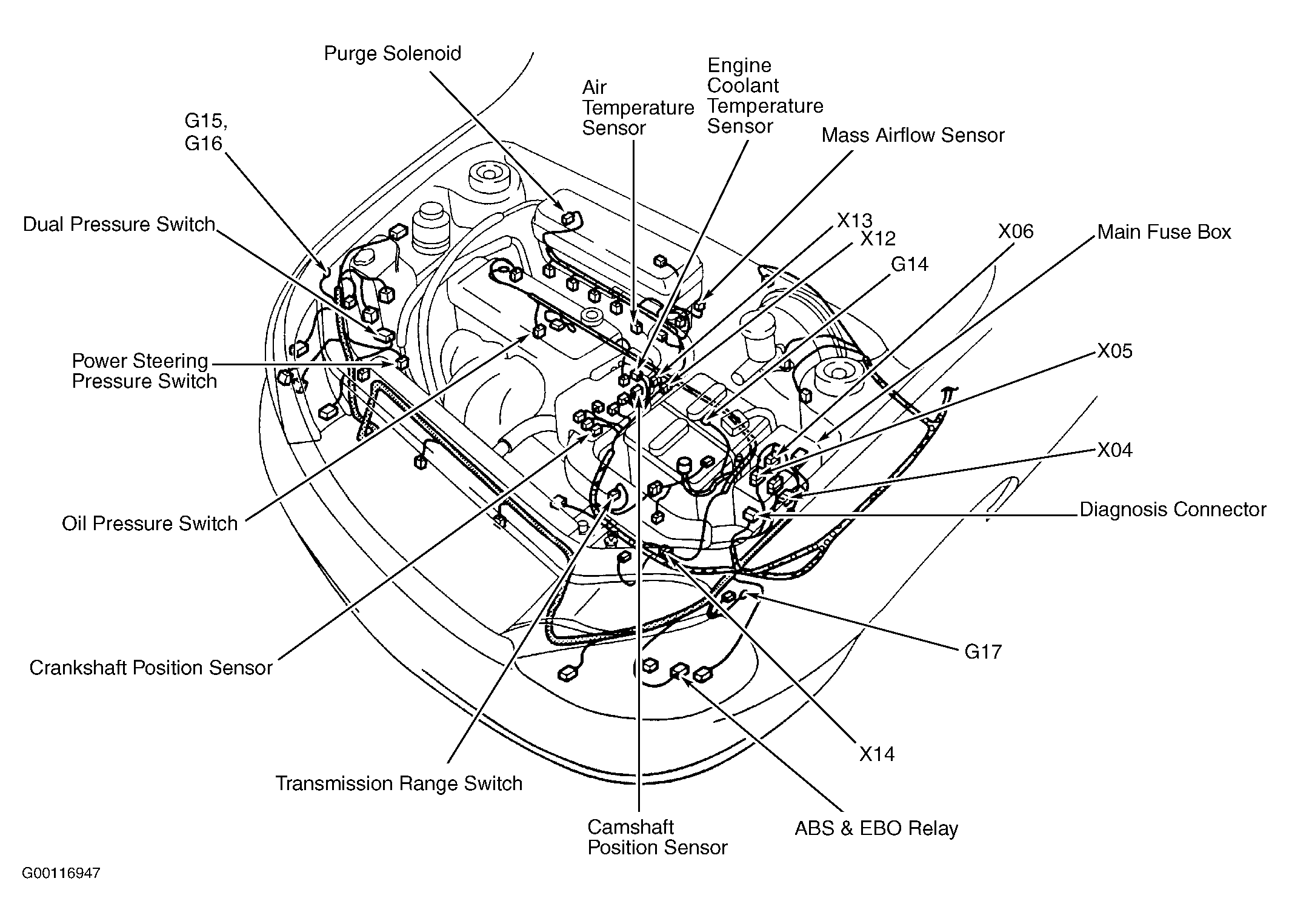 | Main Fuse Box | At left rear of engine compartment. See Figure. |