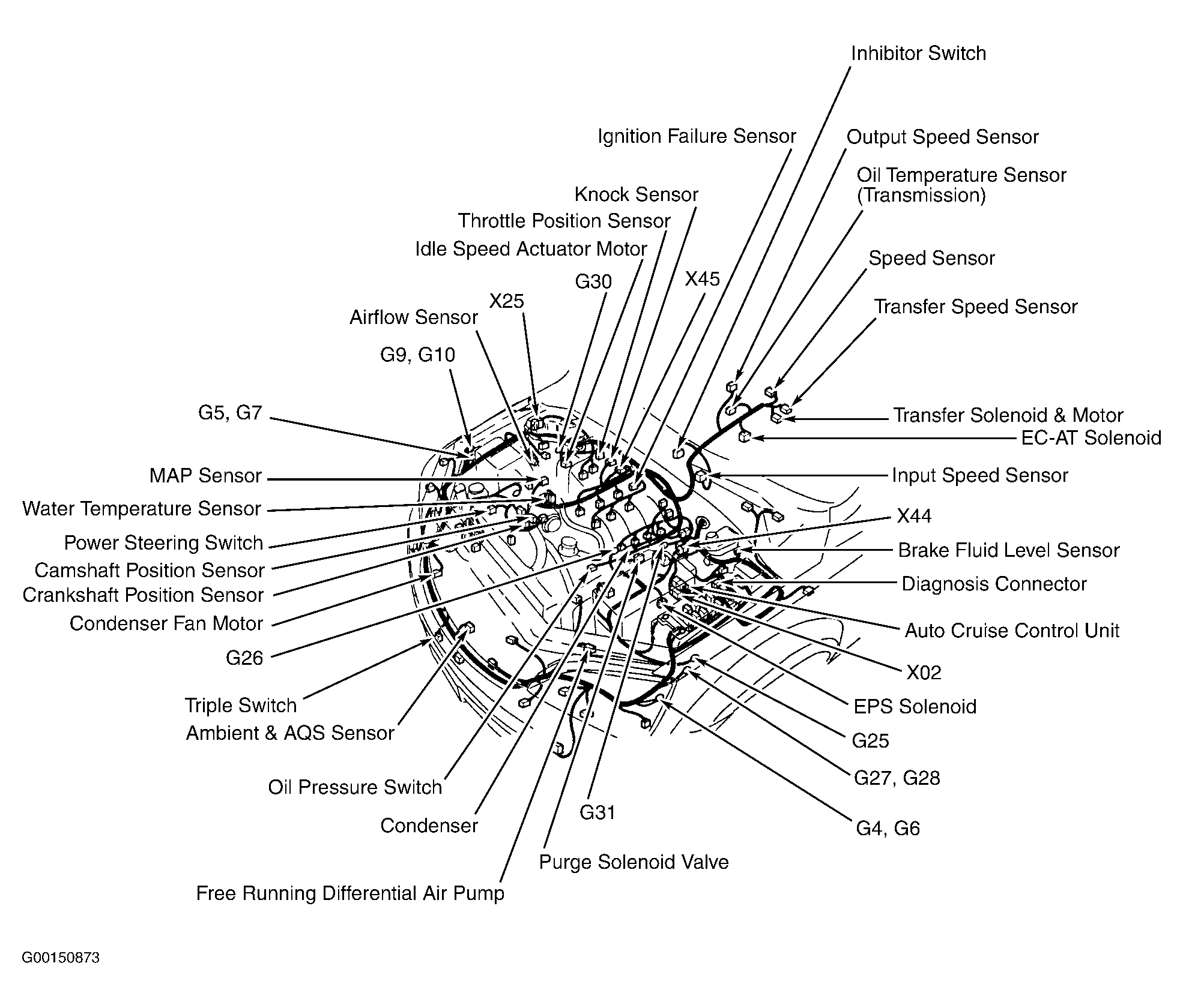 | Auto Cruise Control Unit | At left rear corner of engine compartment. See Figure. |