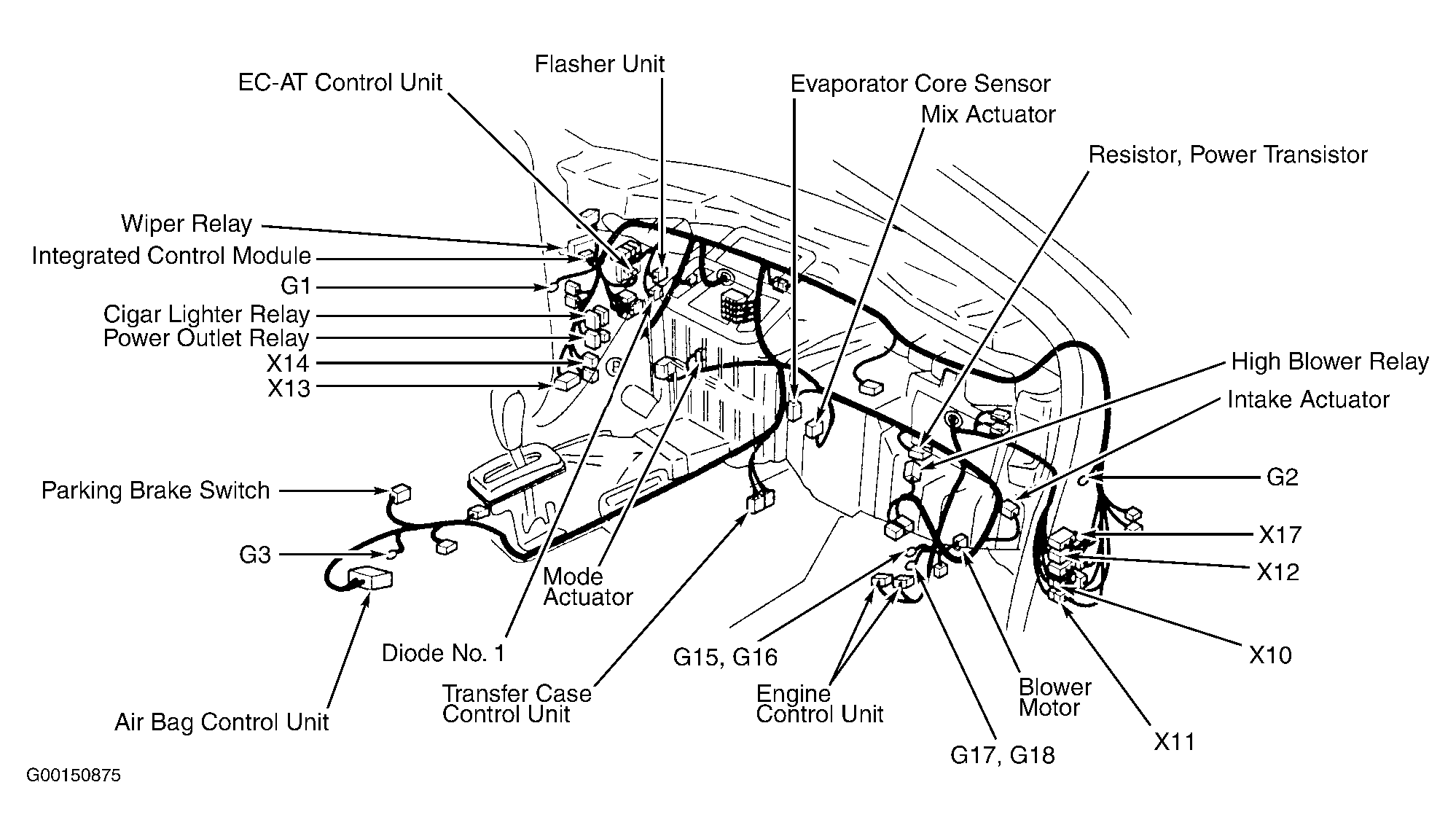 | Transfer Case Control Unit | Below front of center console. See Figure. |