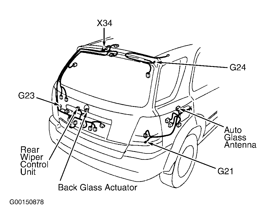 | Rear Wiper Control Unit | At lower center of back door. See Figure. |