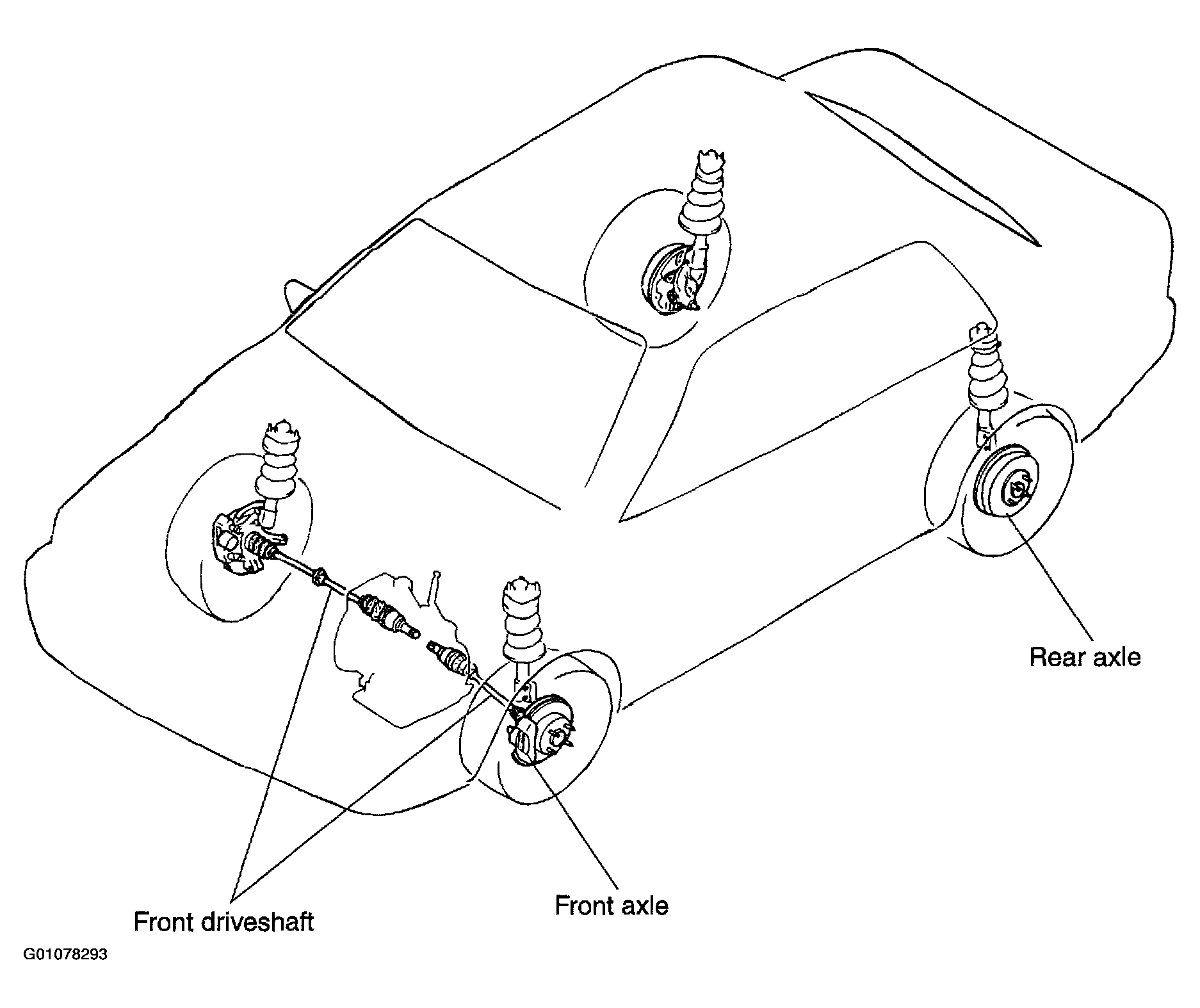 This article includes information pertaining to Driveshafts (Axle Shafts) and Front and Rear Axles which include: hub assemblies, knuckle (spindle) assemblies, seals, wheel bearings and dust covers. See Figure.