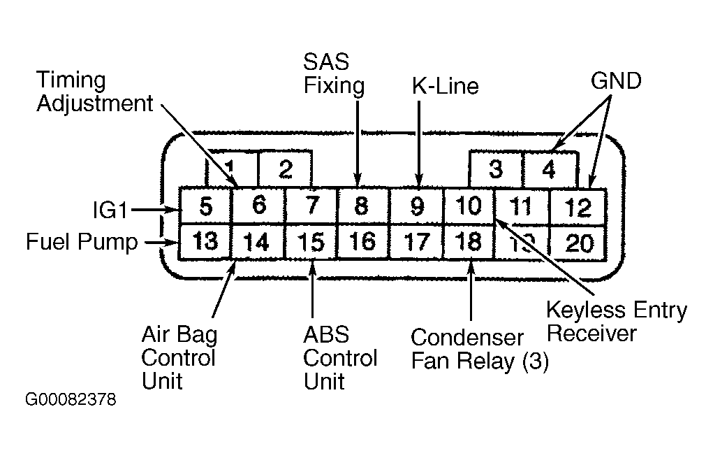 Fig 2: Identifying Underhood Data Link Connector Terminals (Rio, Optima, Magentis (Canadian), Sorento & Spectra)