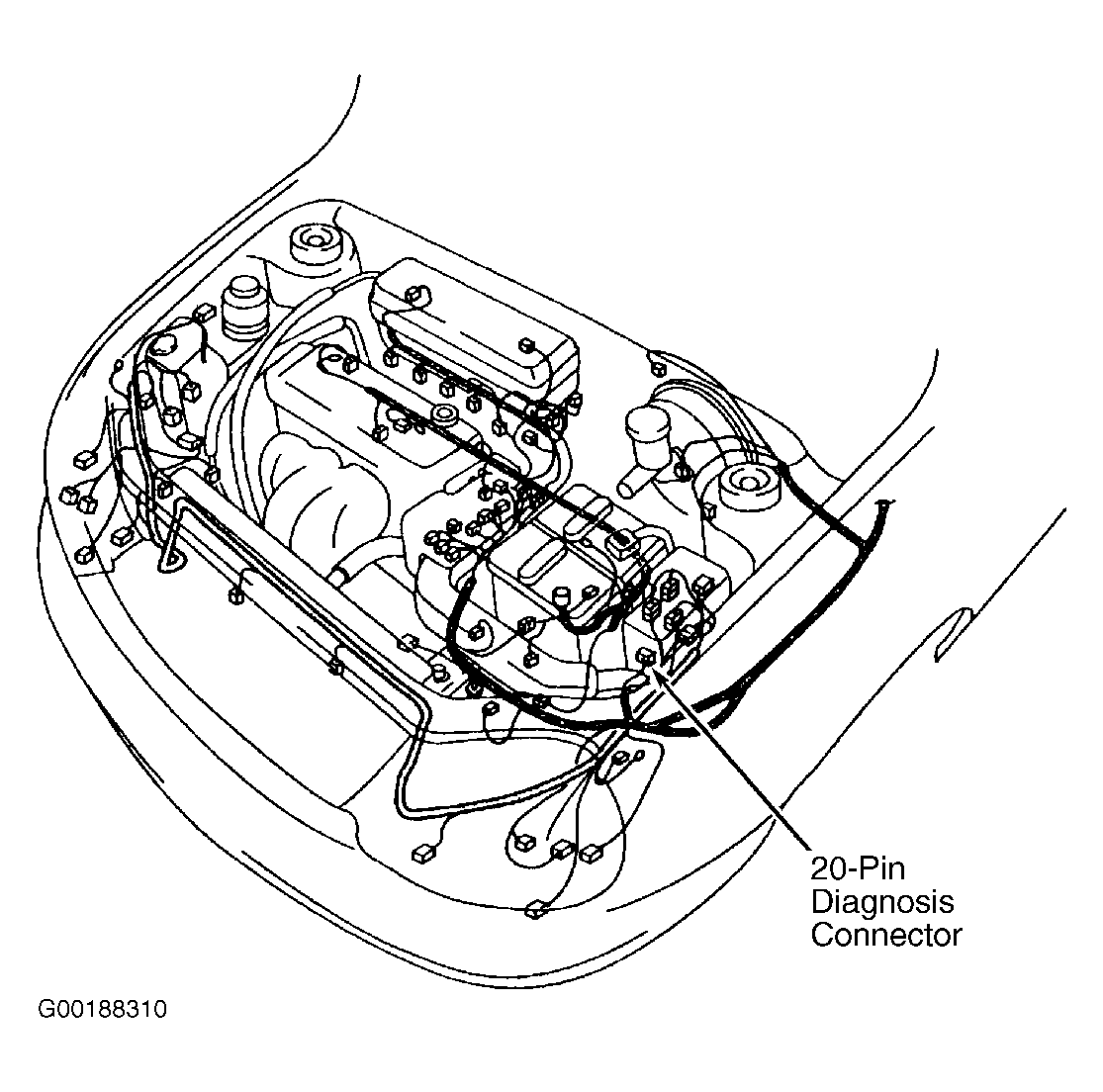 Fig 1: Location Of 20-Pin Diagnostic Connector (Except Optima & Magentis (Canadian))