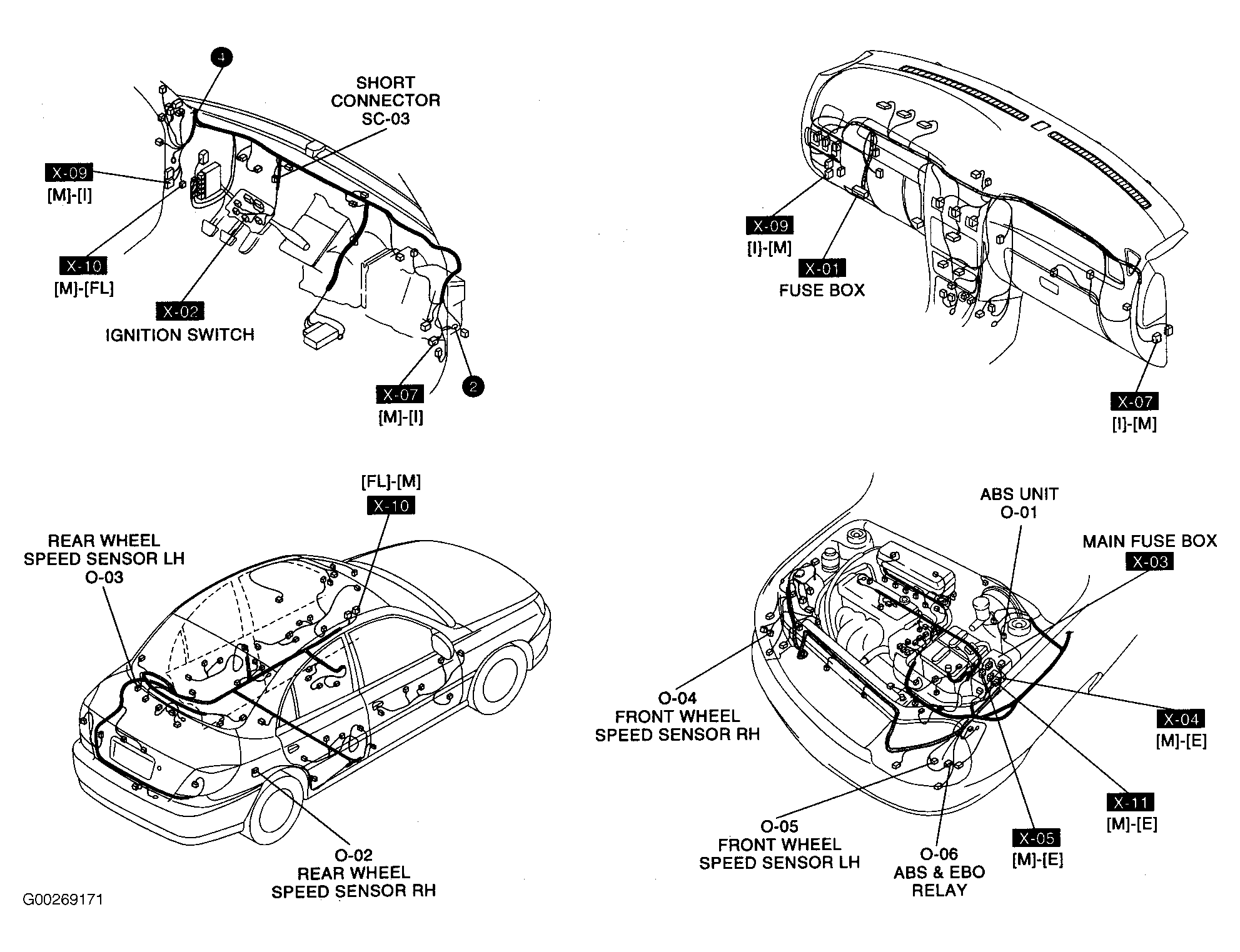 | ABS Unit | At left rear of engine compartment. See Figure. |