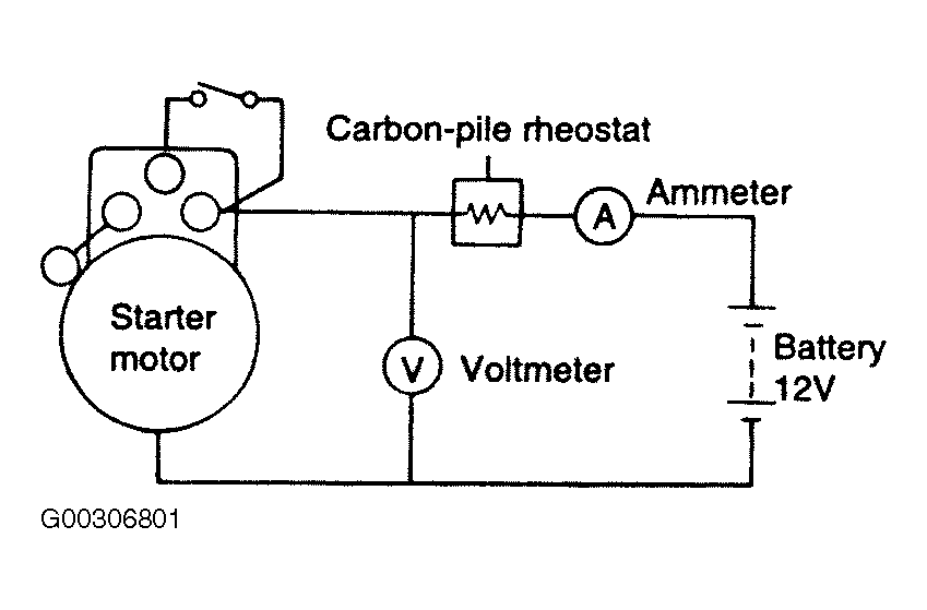 - Connect a voltmeter (15-volt scale) across starter motor.
