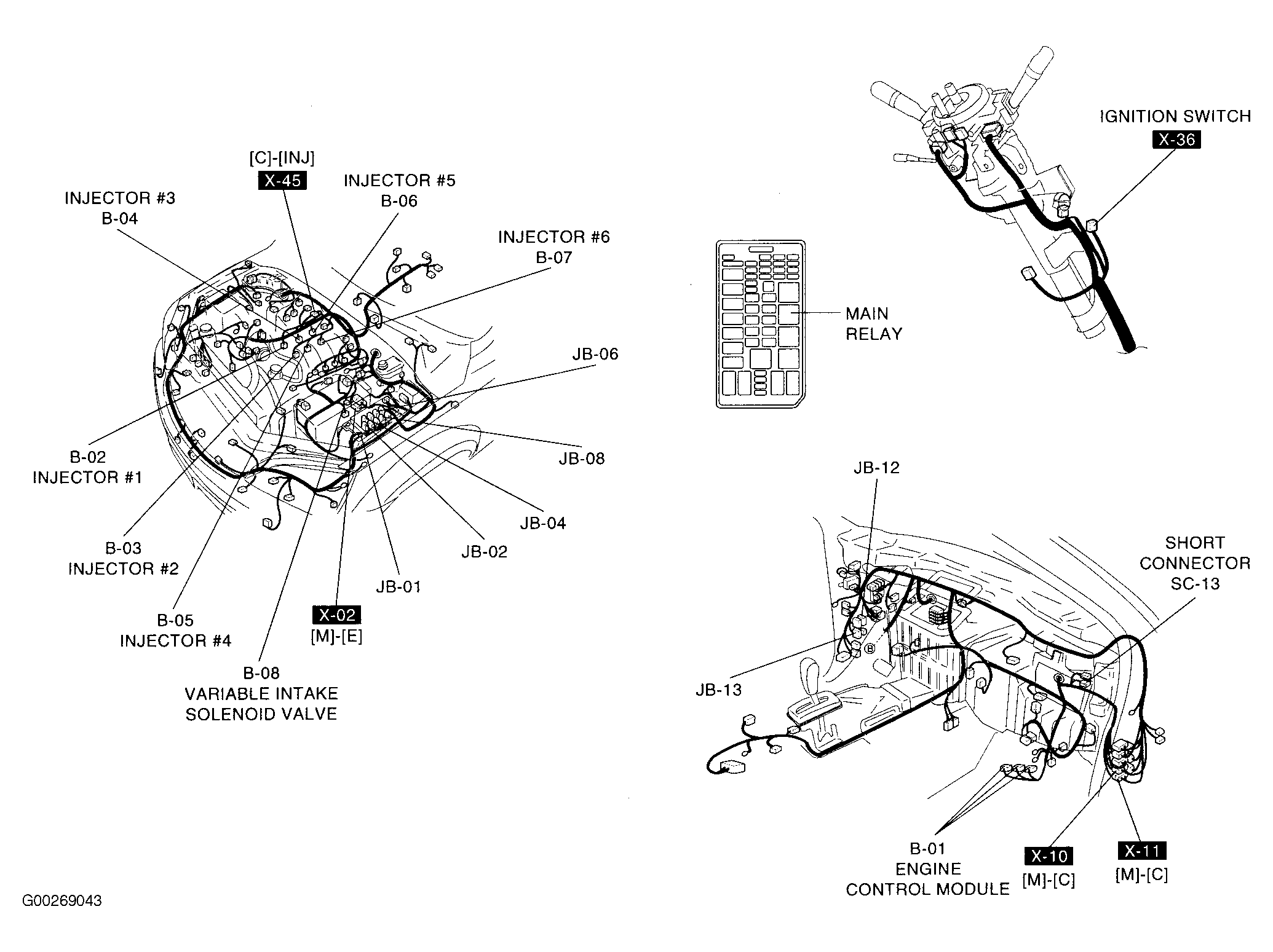 | Engine Control Module | Behind lower right side of dash. See Figure. |