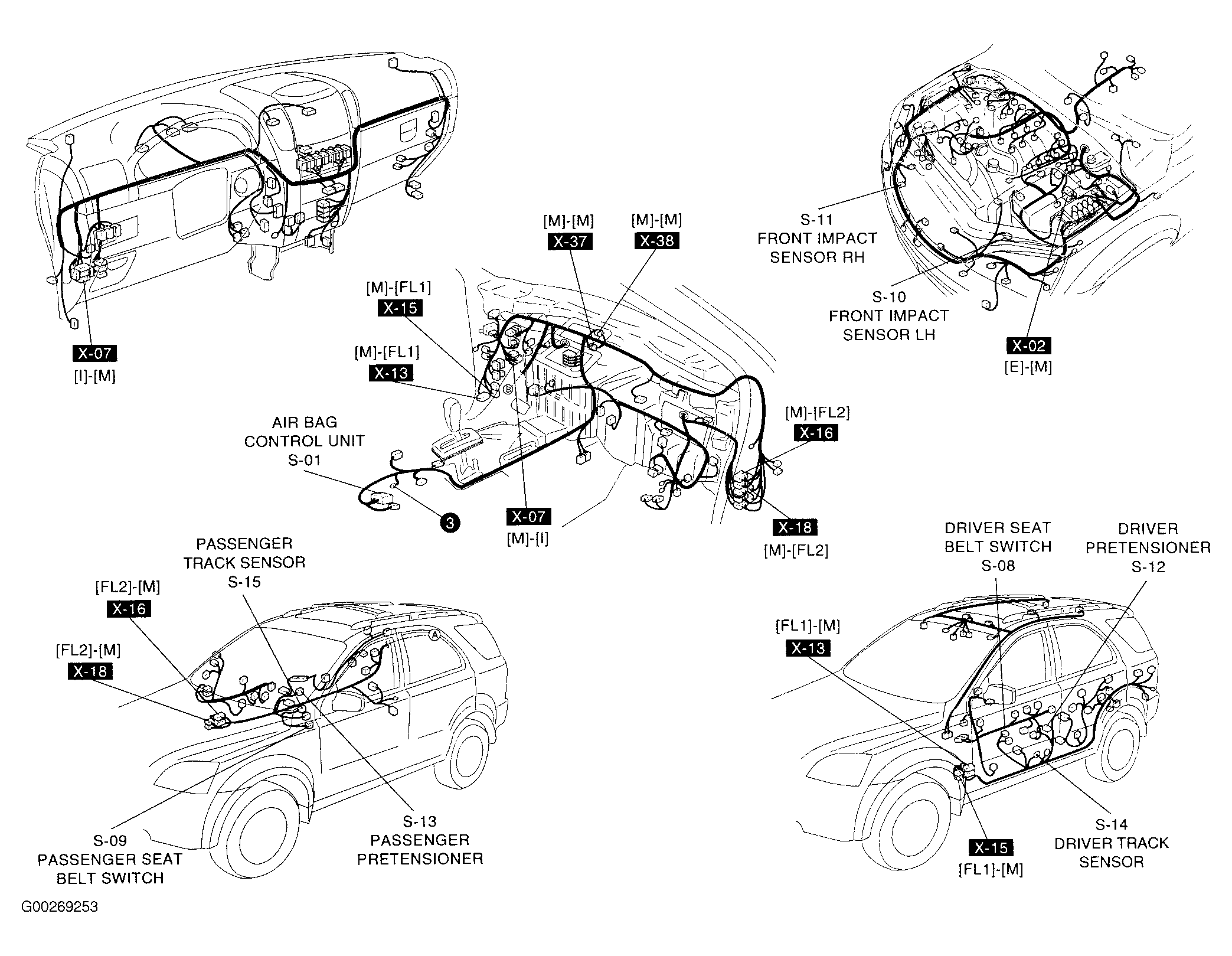 | Air Bag Control Unit | At rear of center console. See Figure. |
