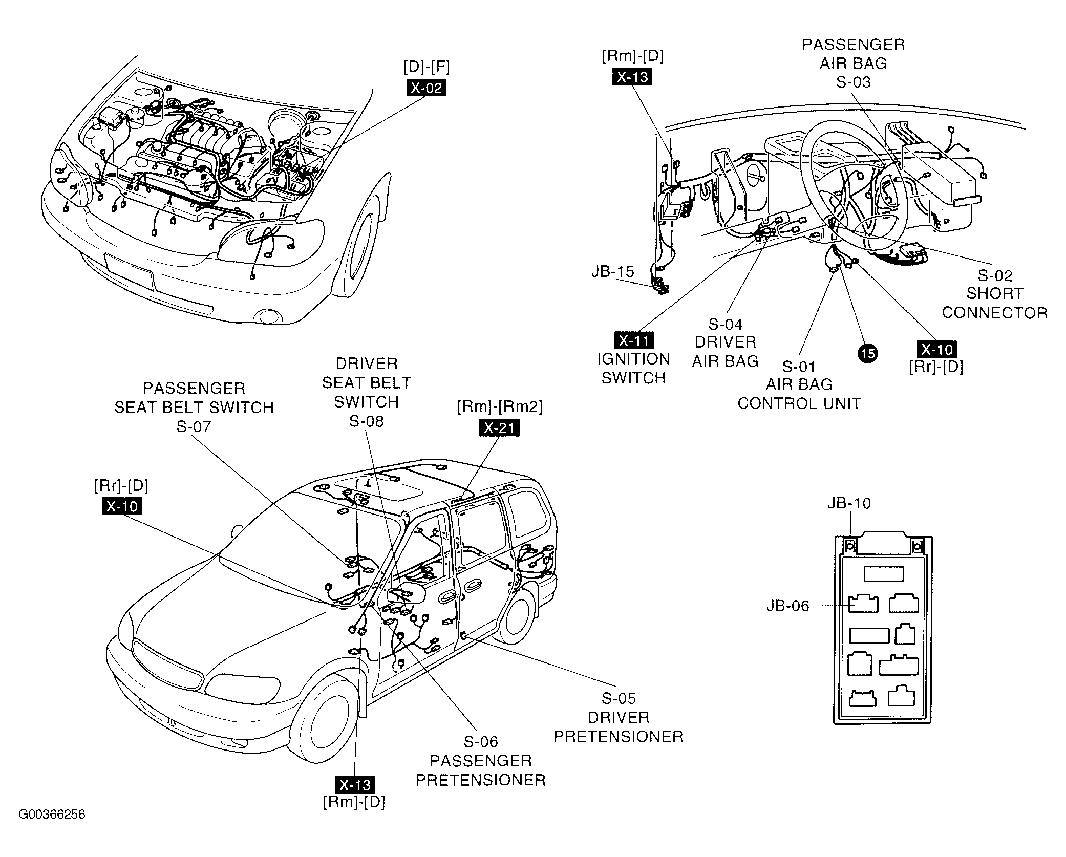 | Air Bag Control Unit | At lower center of dash, on floor tunnel. See Figure. |