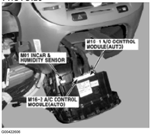 A/C Control Module (Auto) Behind A/C control panel. See Figure .