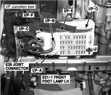| I/P Junction Box | Under left side of dash. See Figure. |