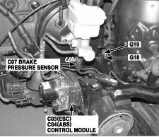 | ABS Control Module | Left rear of engine compartment, below brake master cylinder. See Figure. |