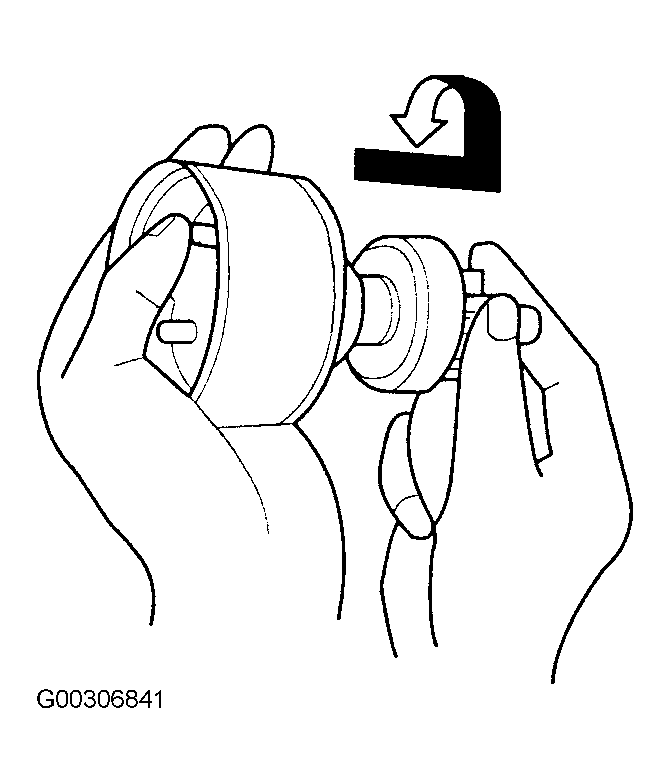 - Rotate the overrunning clutch both ways. If overrunning clutch locks in one direction and rotates smoothly in other direction, overrunning clutch is okay. If it does not lock in either direction of it locks in both directions, replace it. See Fig 1.