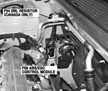 | ABS/ESC Control Module | At right rear of engine compartment. See Figure. |