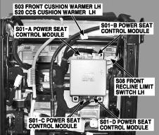 | Power Seat Control Module (Driver's) | Under driver's seat. See Figure. |