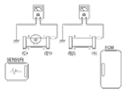 Fig 3: Measuring Resistance Between Connector (C) And (B1) And Between (B2) And (A)