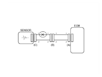 - With each connector still connected, measure the voltage between the chassis ground and terminal 1 of each connectors (A), (B) and (C) as shown in Fig 4.