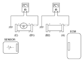 Fig 3: Measuring Resistance Between Connector (C), (B1) And Chassis Ground