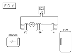 - With each connector still connected, measure the voltage between the chassis ground and terminal 1 of each connectors (A), (B) and (C) as shown in [Fig 4].