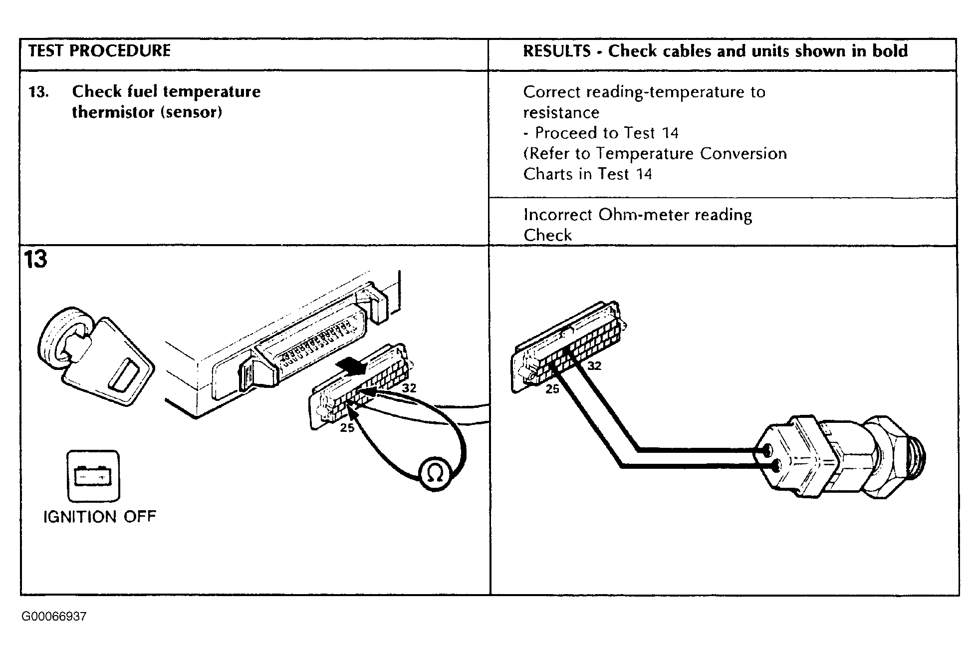 Test fuel temperature sensor, see Fig 1 . See appropriate WIRING DIAGRAMS article. After completing the tests, retest the vehicle to ensure the faults have been rectified. If faults still persist, recheck using Lucas Diagnostic Equipment or Test Book.