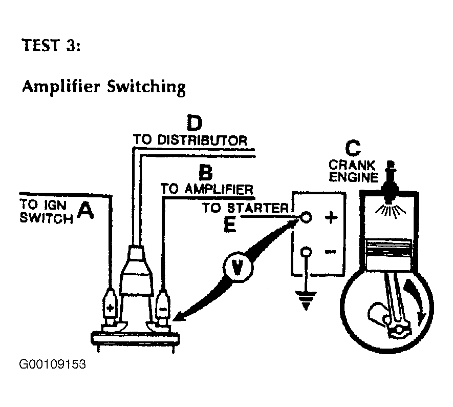 Connect the voltmeter between battery positive terminal and high tension coil negative terminal, the voltmeter should register zero volts. See Fig 1 . Switch the ignition ON, the voltmeter should still register zero volts. Crank the engine, the voltmeter reading should increase when cranking, in which case proceed to TEST 5 . If there is no increase in voltage during cranking proceed to TEST 4 .