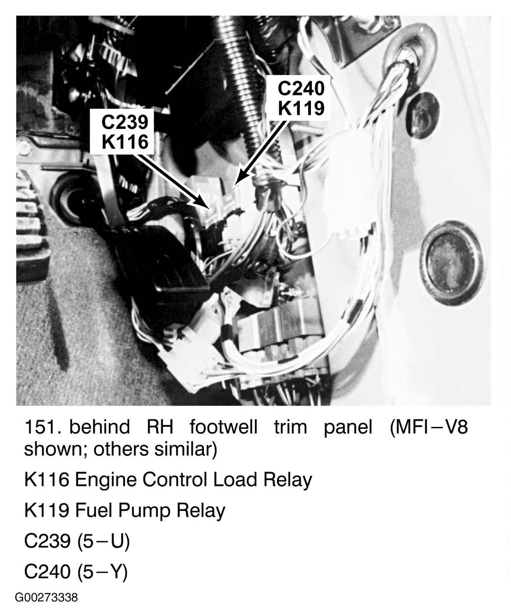 - Remove fuel pump relay. Fuel pump relay is located behind right footwell trim panel. See Figure . Start and run engine.