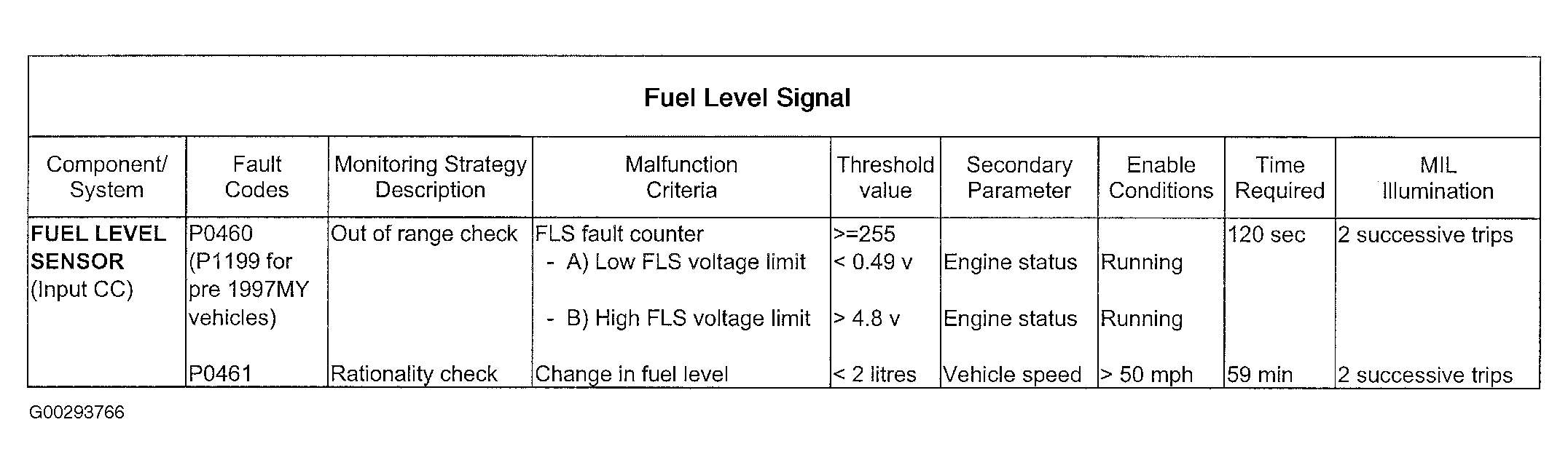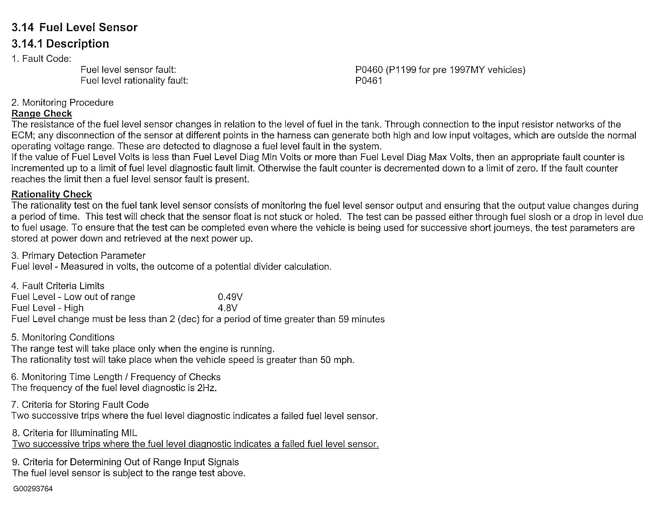 This monitor covers information for DTC P0460, P0461 and P1199 (for pre 1997 models).