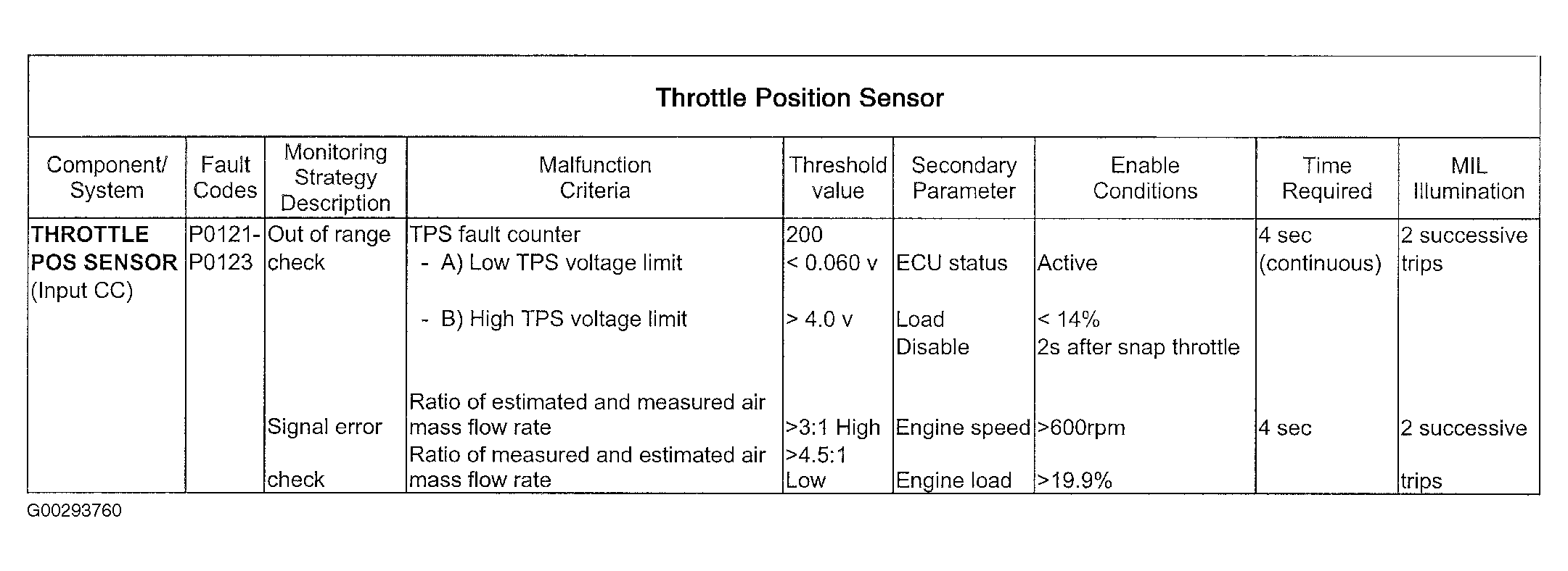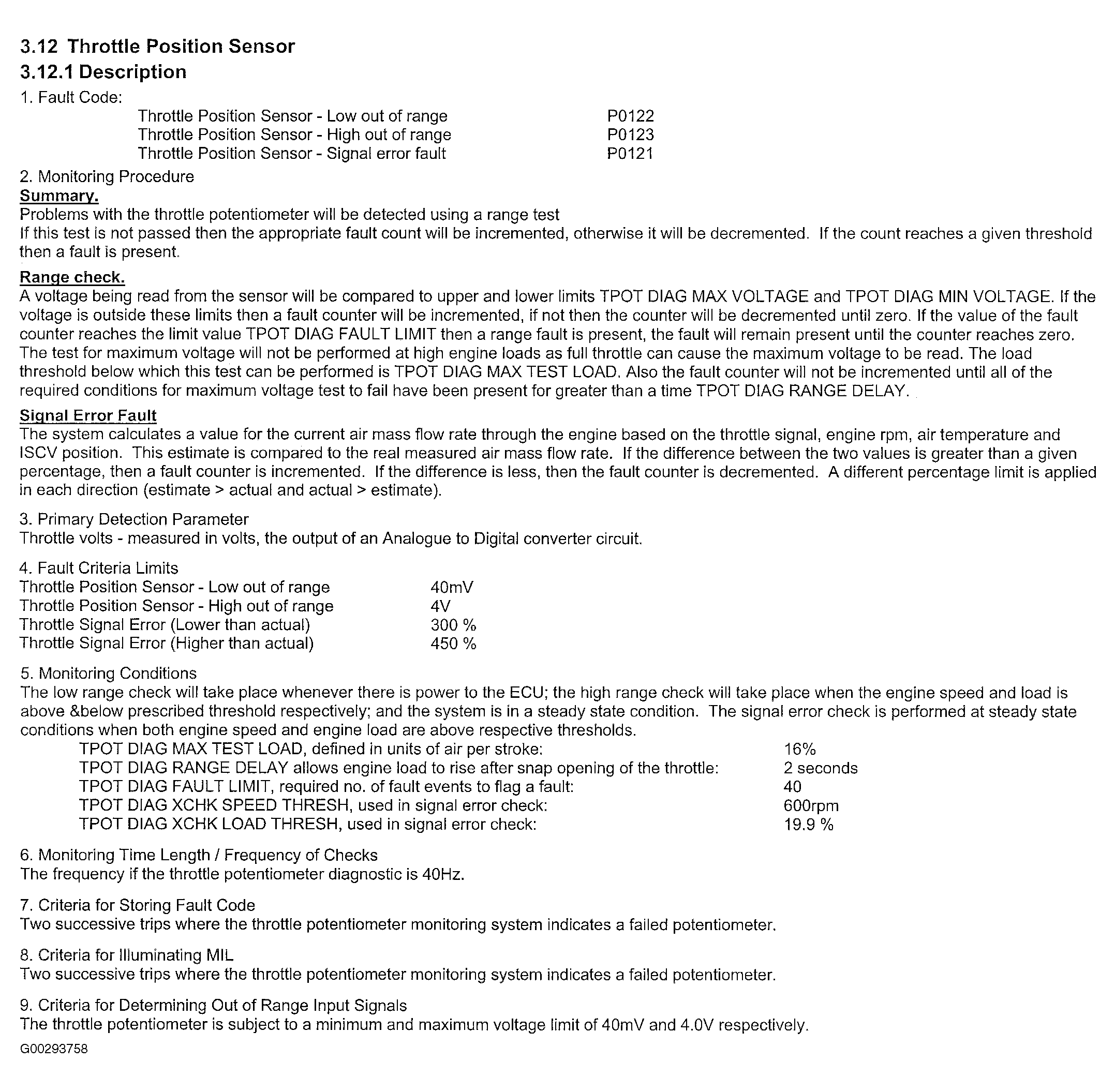 Home >> Land Rover >> 1997 >> Defender 90 Automatic >> Repair and Diagnosis >> Engine Performance >> System >> Engine Controls - Self-Diagnostics >> System Monitors >> Throttle Position Sensor Monitoring