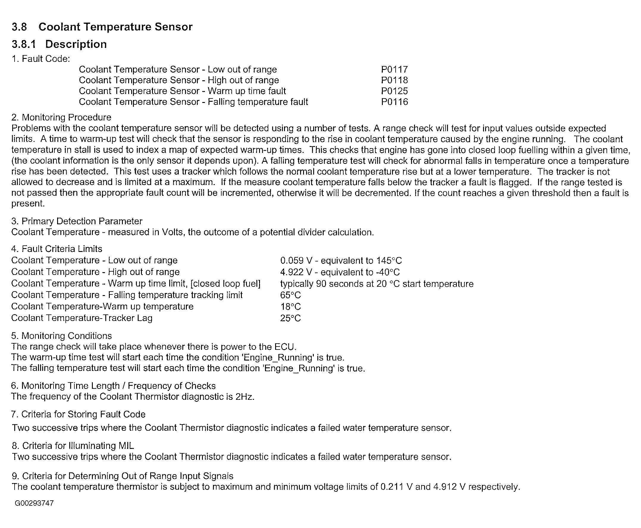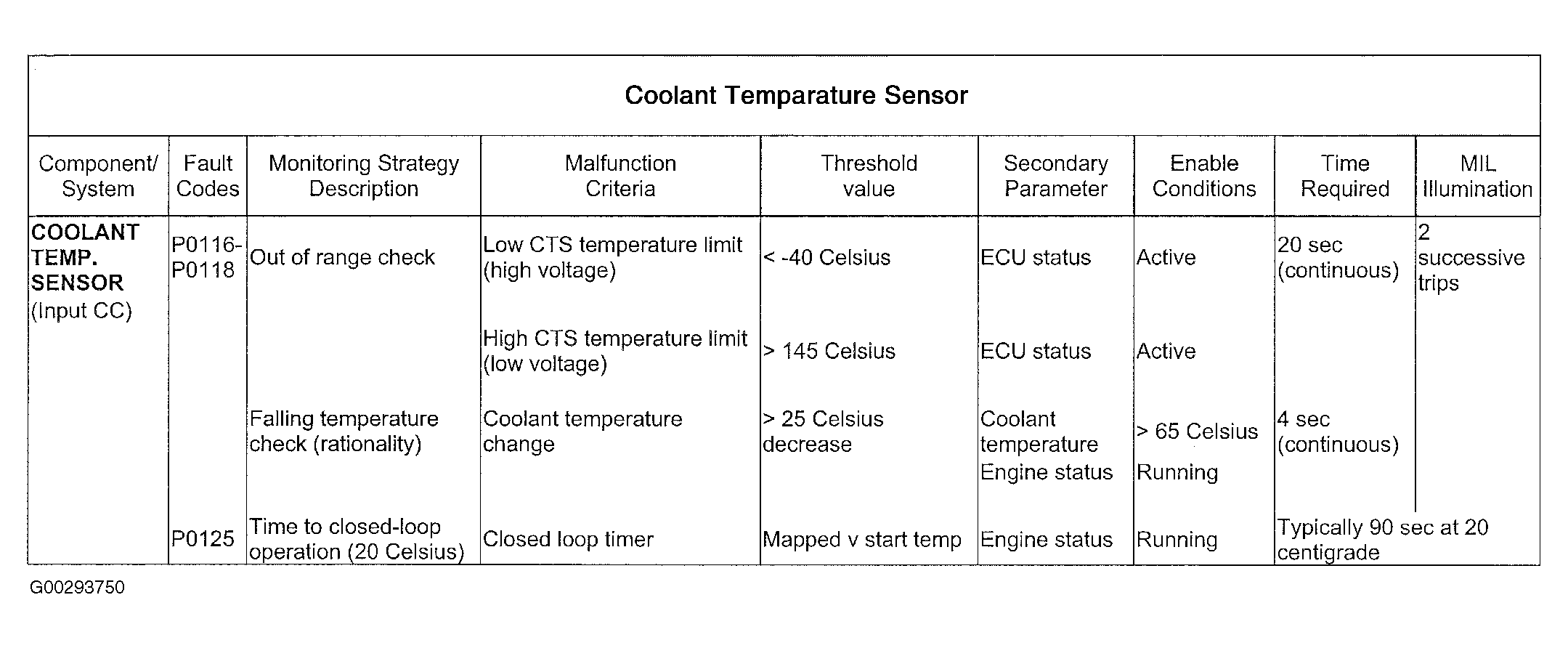 This monitor covers information for DTC P0116-P0118 and P0125.