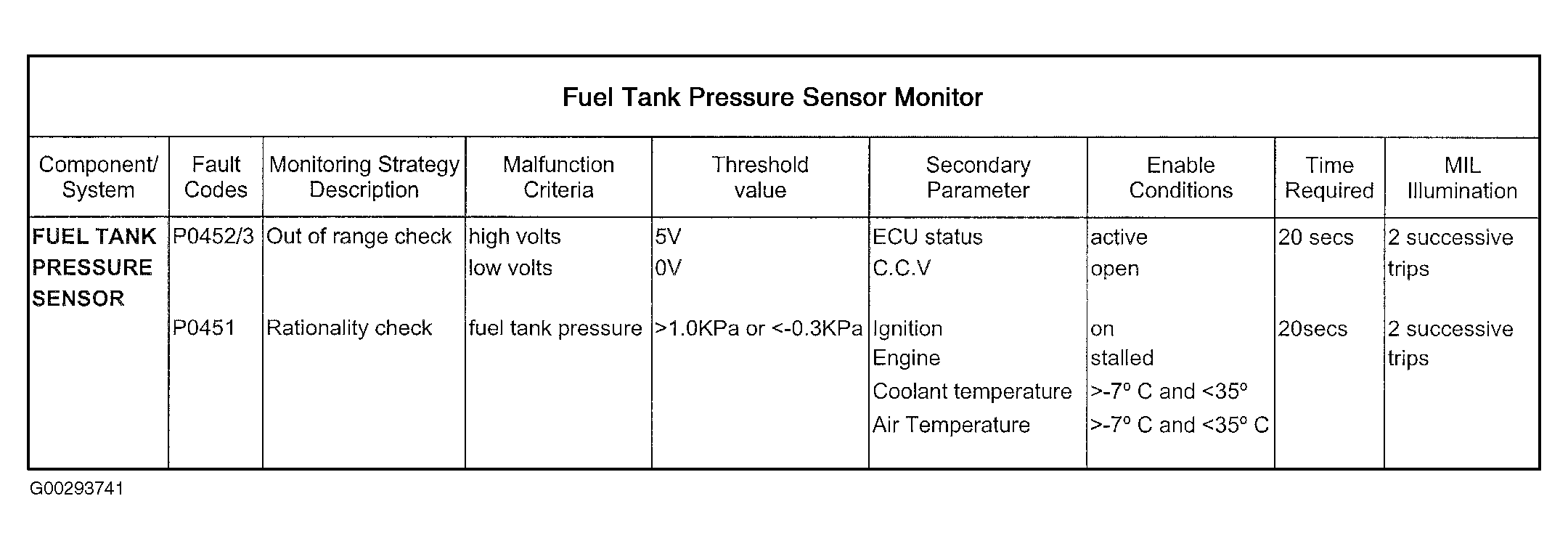 For fuel tank pressure sensor monitoring information see Fig 1