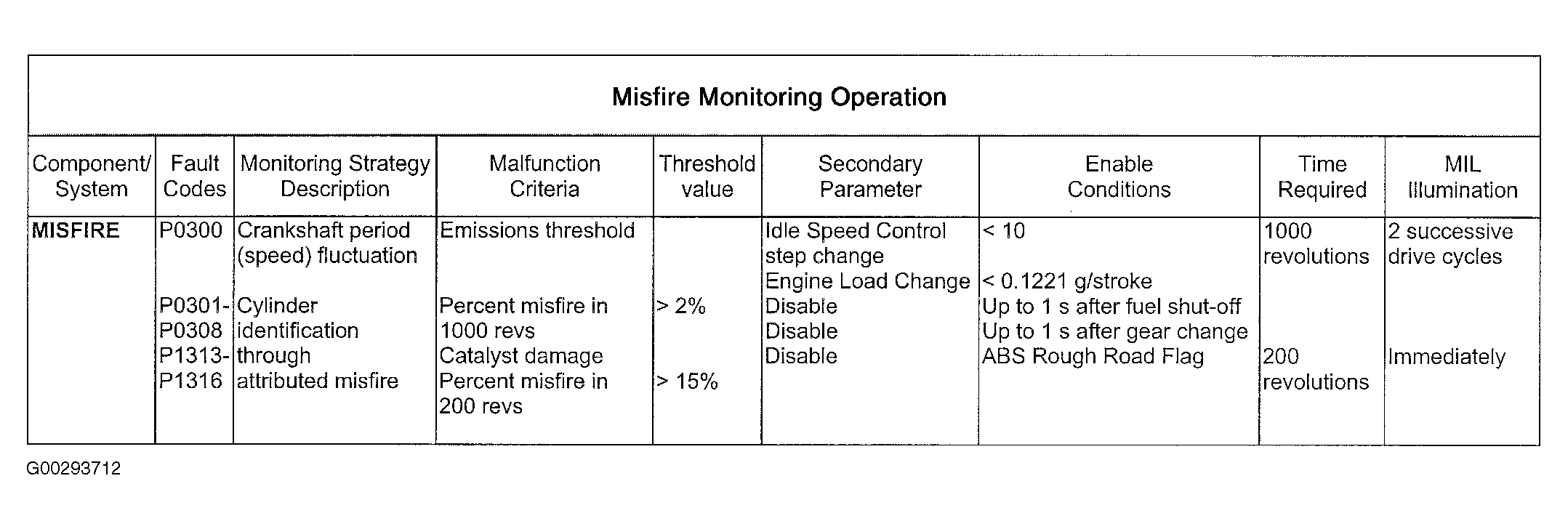 For misfire monitoring information see