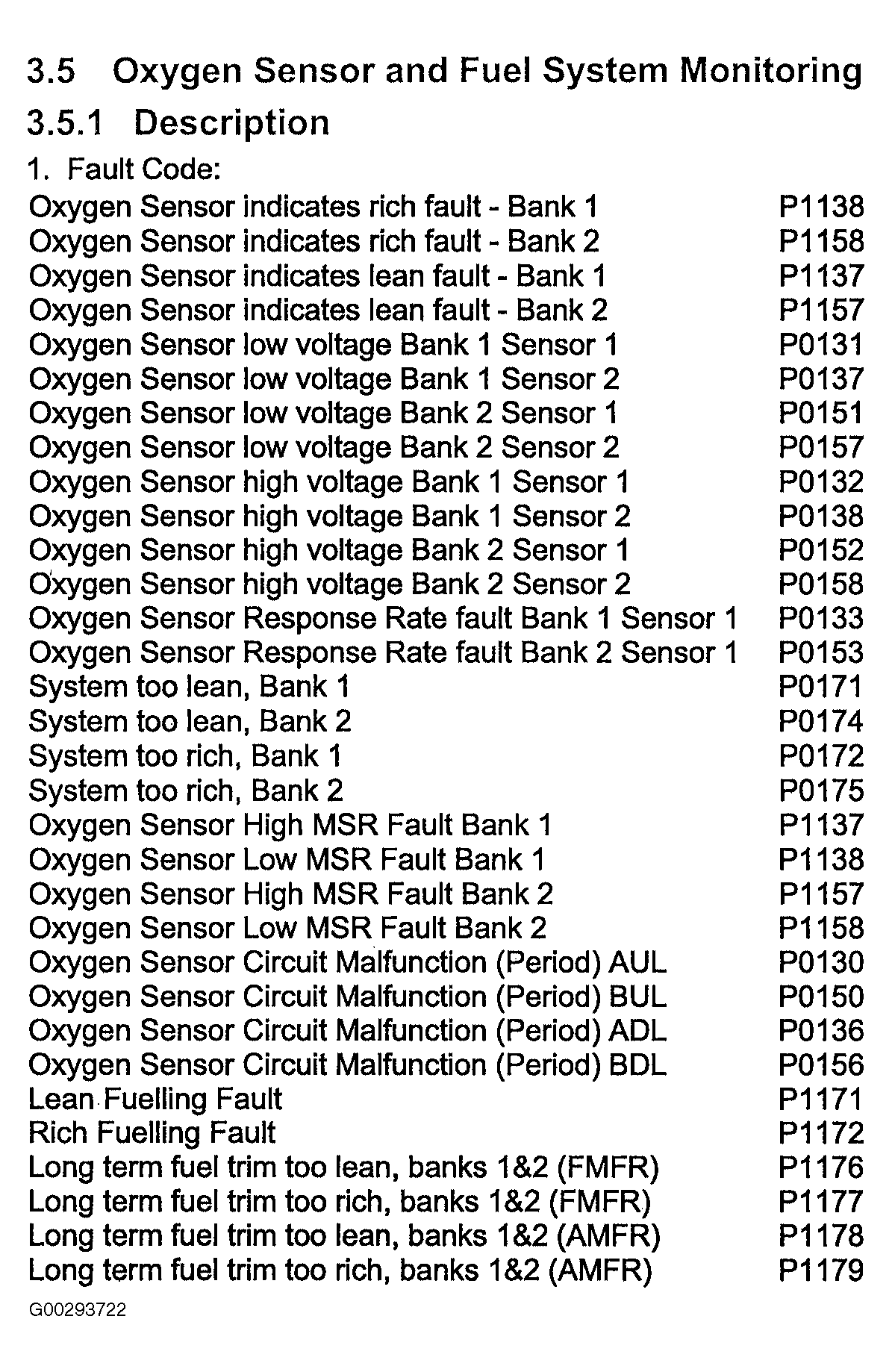 For oxygen sensor and fuel system monitoring information see Fig 1