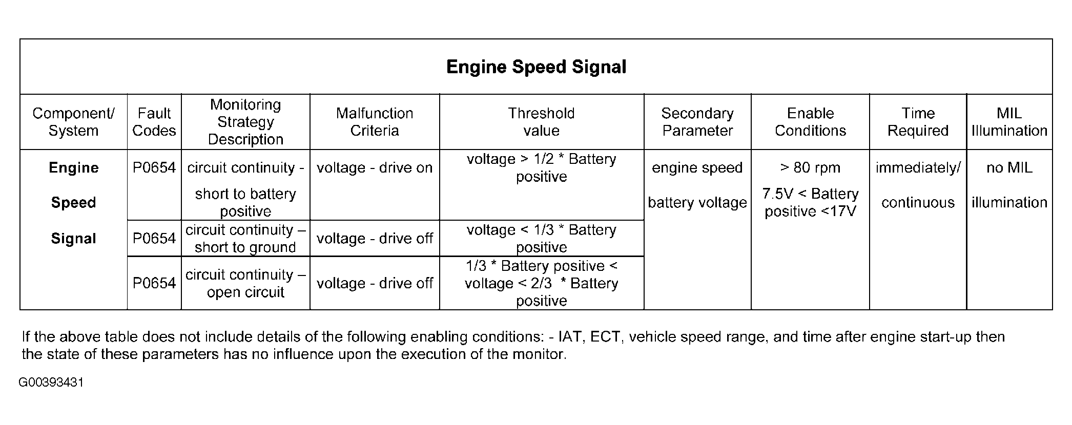 - Engine speed signal driver open circuit, i.e. the driver voltage is greater than one third of the battery voltage but less than two thirds of the battery voltage when the driver is off.