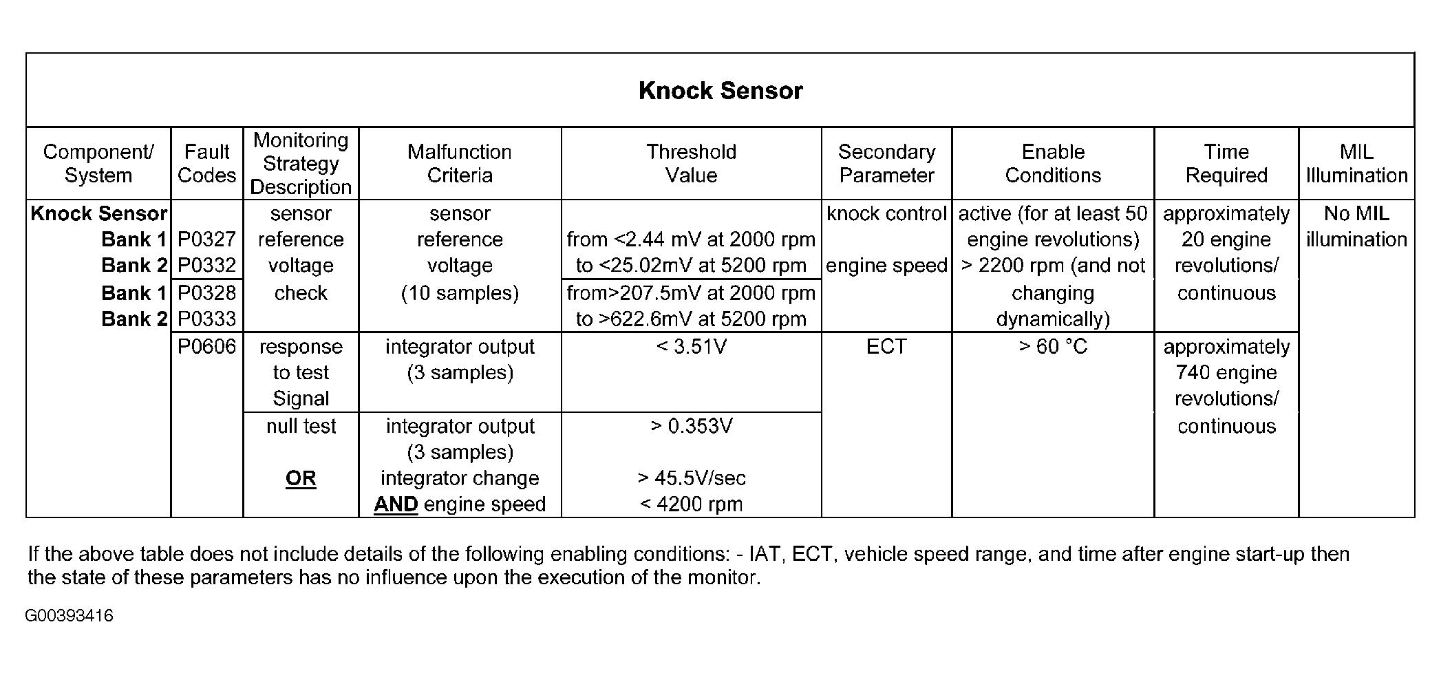 There are three knock sensor diagnostic checks during which a fault is detected if: