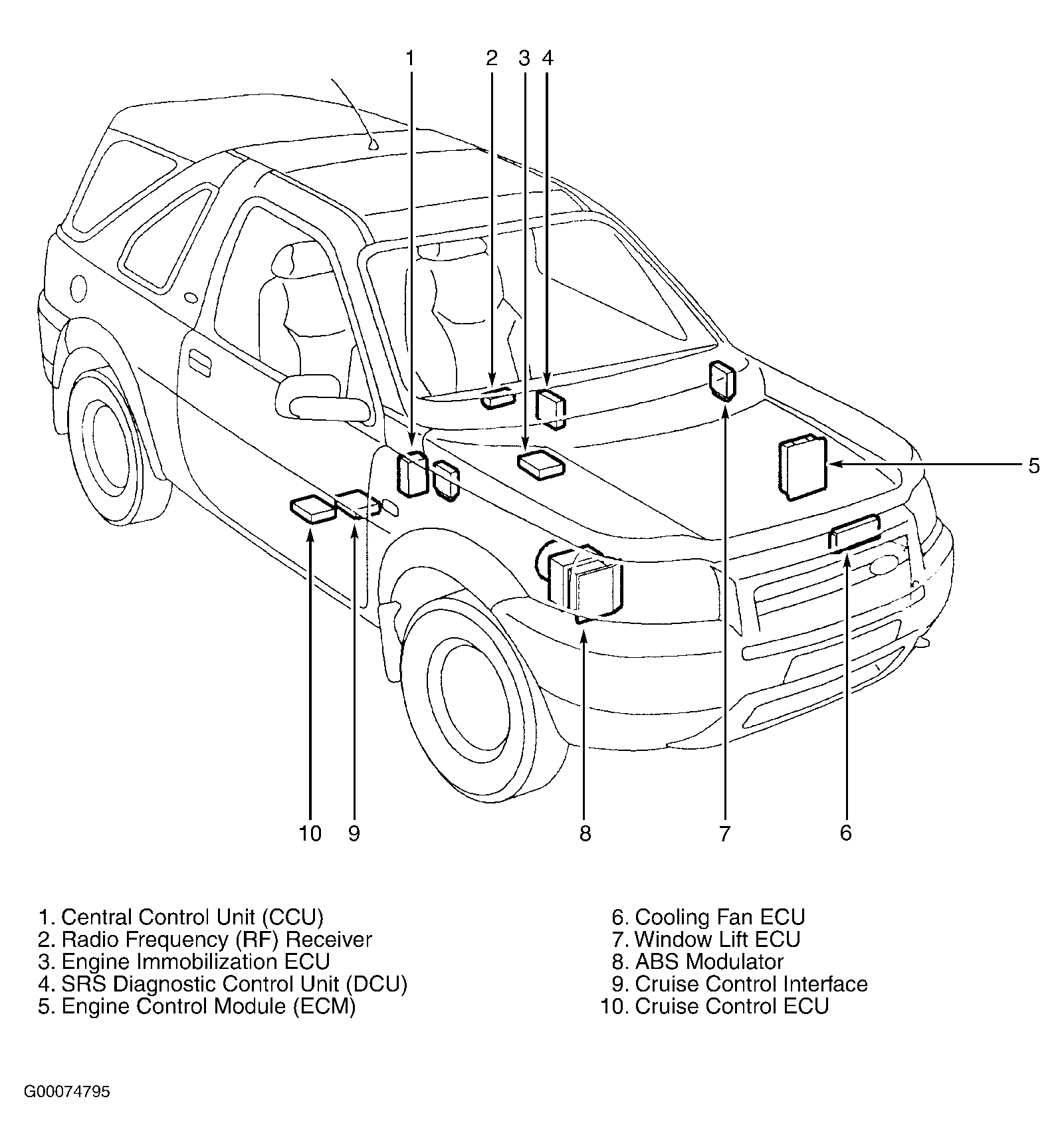 | Central Control Unit (CCU) | Behind passenger compartment fuse box. See Figure . |