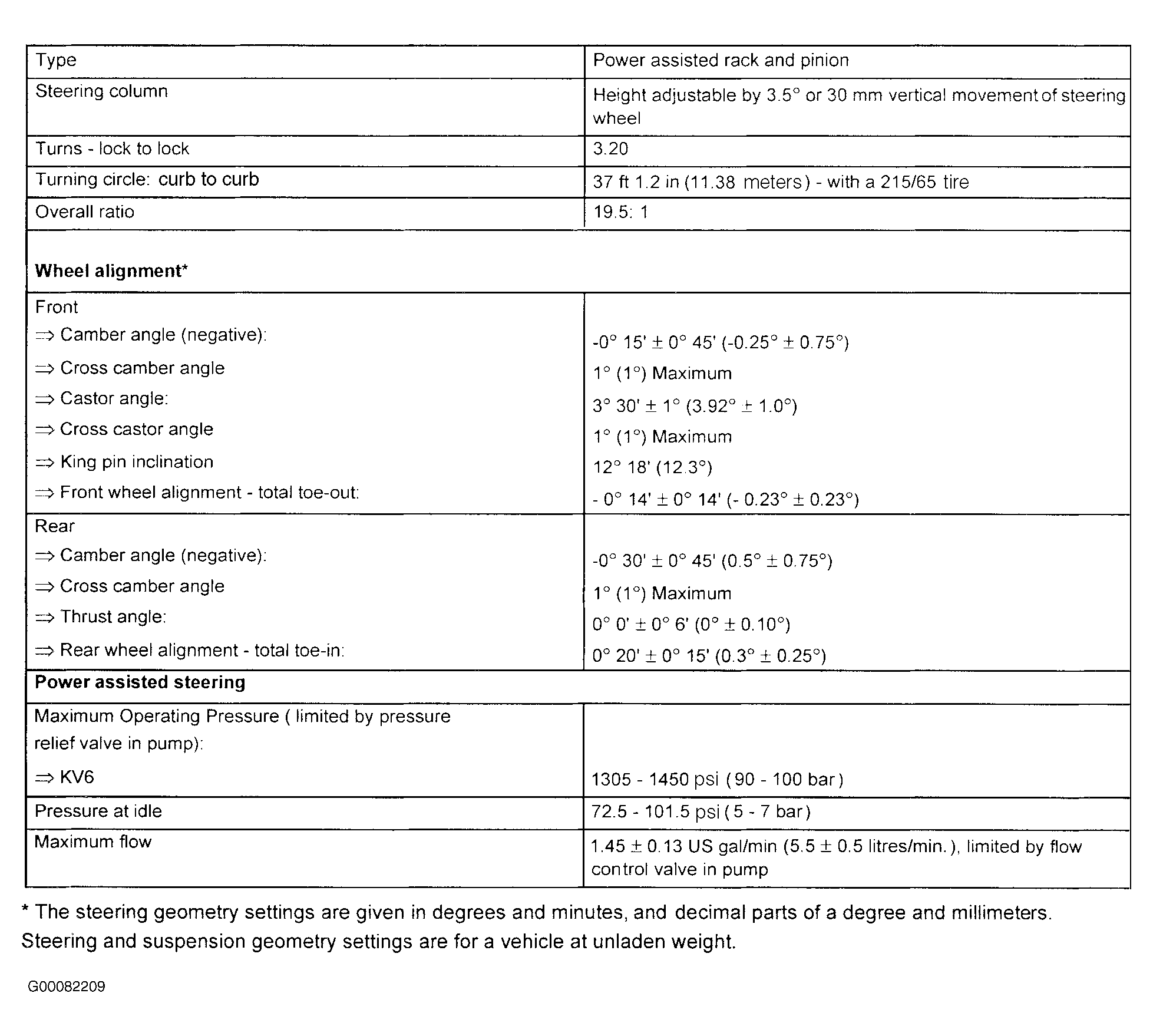 Fig 1: Front & Rear Wheel Alignment Specifications