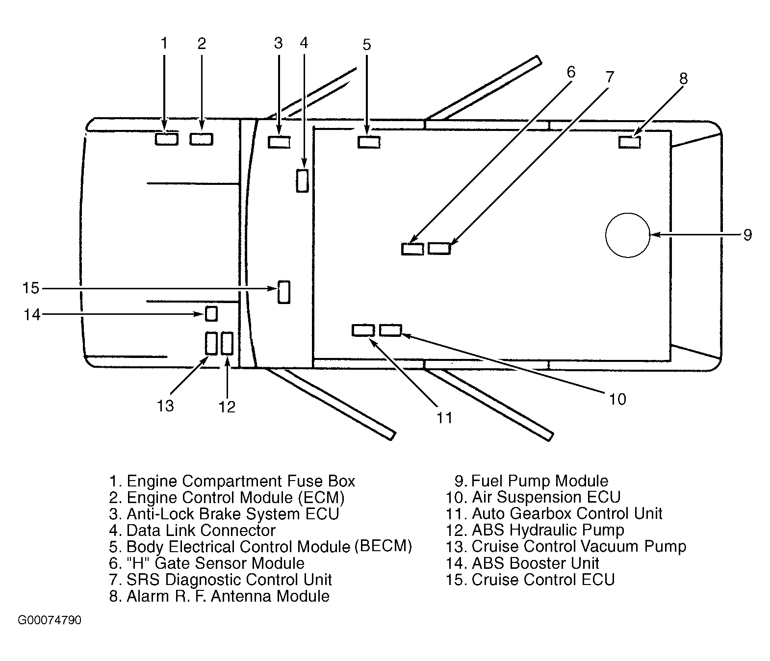 | Air Suspension ECU | Under left front seat. See Figure . |