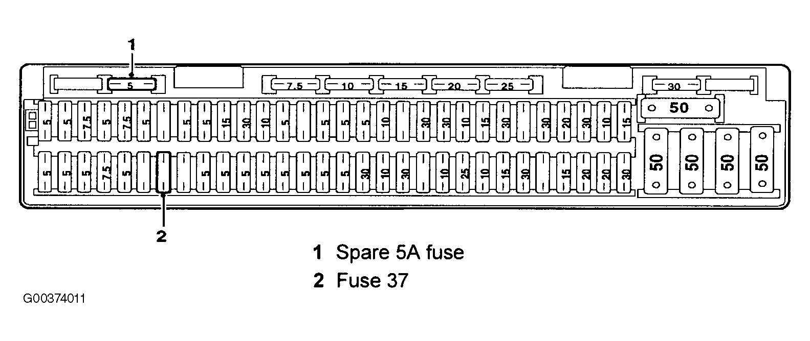To engage the transfer box in neutral, switch the ignition to position II and select neutral N on the transmission selector lever. Insert a spare 5 Ampere fuse or greater into the empty fuse position 37 in the passenger compartment fusebox, which is located at the back of the glovebox. Fuse position 37 can be identified using the legend on the fusebox cover. See Fig 1.