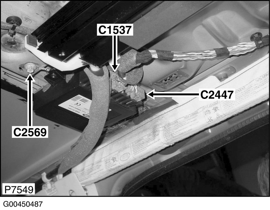 | Restraints Control Module Connector (C0256) | Under center console. See Figure. |