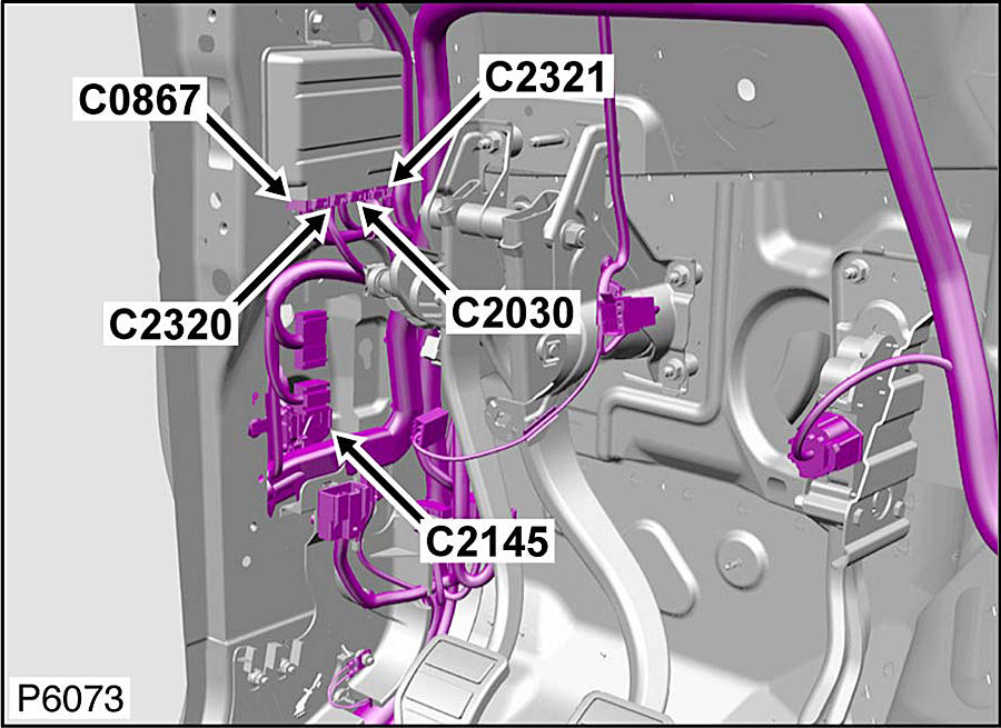 | Parking Aid Module Connector (C1457) | Base of left "C" pillar. See Figure. |