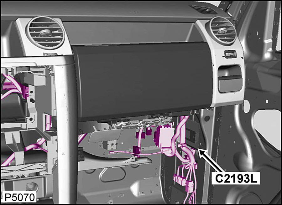 | Air Suspension Control Module Connector (C2030) | Base of left "A" pillar. See Figure. |