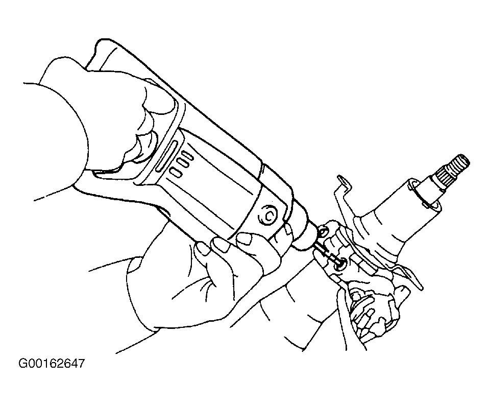- Using a centering punch, mark the center of the tapered head bolts. Using a 3-4 mm drill, drill into the tapered head bolt. See Fig 1. Using a screw extractor, remove the tapered head bolt. See Fig 2. Remove the two bolts and separate the upper bracket and column tube.