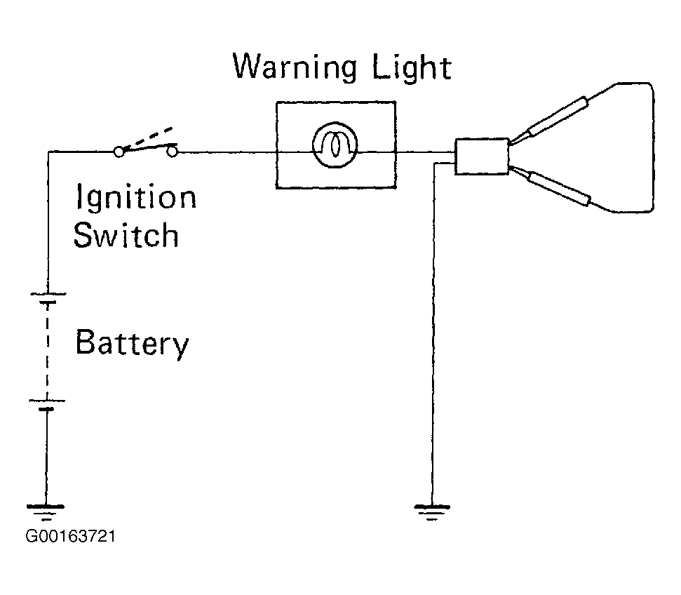 - If warning light does not light up, test the bulb or wire harness.