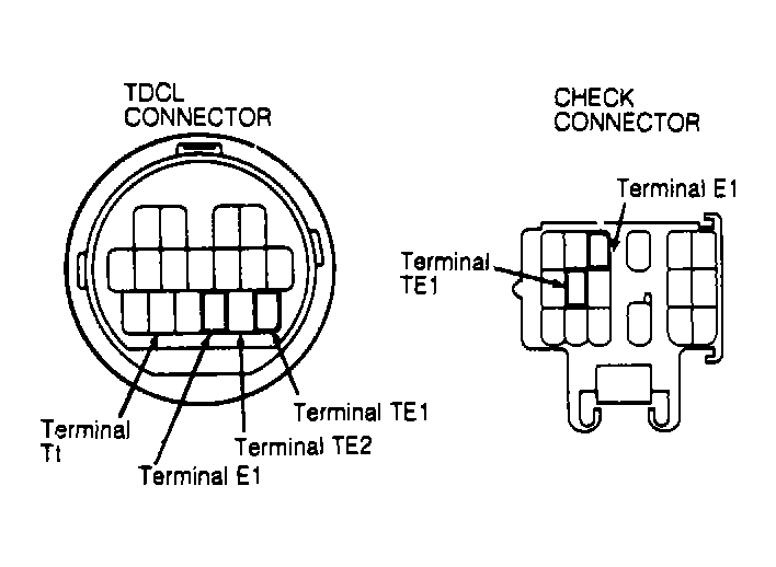 - Turn ignition on. DO NOT start engine. Using a jumper, wire connect terminals E1 and TE1 together either on TDCL connector or check connector. See Figure. Count number of flashes from CHECK engine light.